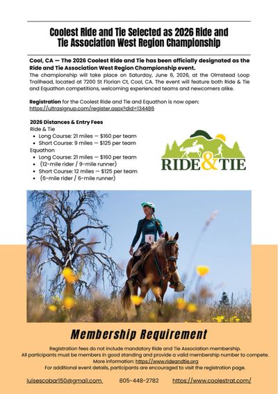 Cool, CA — The 2026 Coolest Ride and Tie has been officially designated as the Ride and Tie Association West Region Championship event.